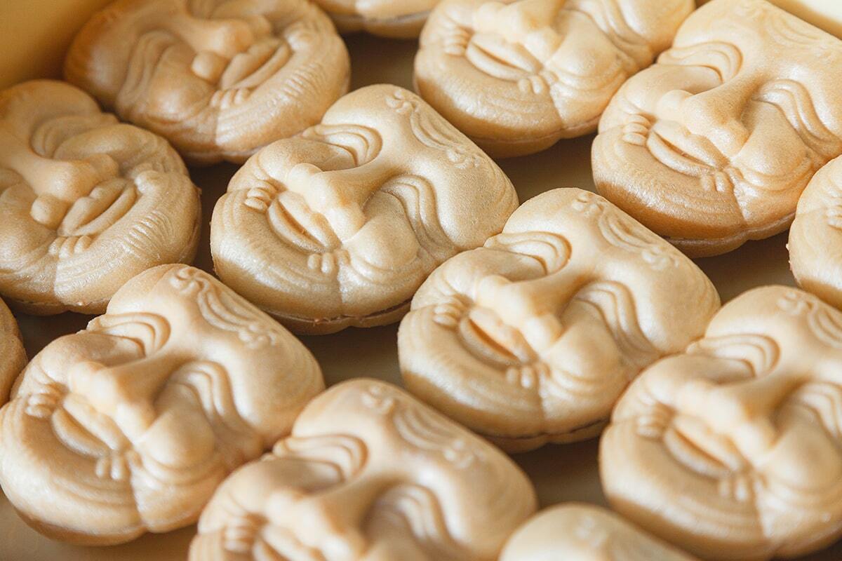 初代店主が愛した能の「翁面」を模った最中です。